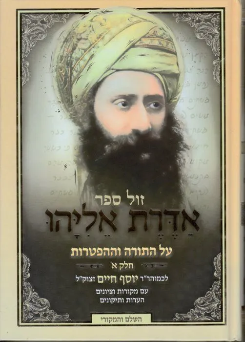 הספר "אדרת אליהו" דרשות על חמישה חומשי תורה - חידושים, פירושים ודרושים, רמזים, מעשיות ומשלים נפלאים בדרך פשט רמז וסוד על סדר פרשיות השבוע וההפטרות מאת המקובל האלוקי הרה"ג יוסף חיים ה"בן איש חי".