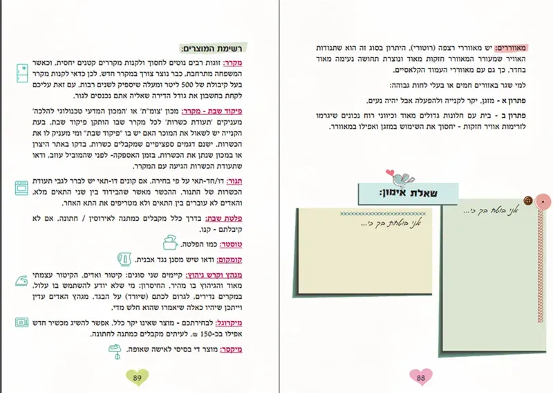 בקרב זוגות בציבור הדתי לאומי – היה עד היום חסך בכלים אלה בעבר, כאשר התארסו, היו חברות הכלה מכינות לזוג מחברת 'טיפים ועצות' בכל הקשור לנושאי החתונה... מנהג זה התיישן ואינו מועיל באמת.