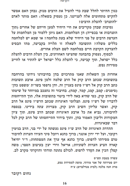מסירות נפש - הקרבת היחיד להצלת הרבים / פרופ' נחום רקובר