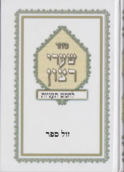 סידור שערי רצון לחמש תעניות מסודר ומוגה מחדש באותיות מאירות עיניים בנוסח עדות המזרח.