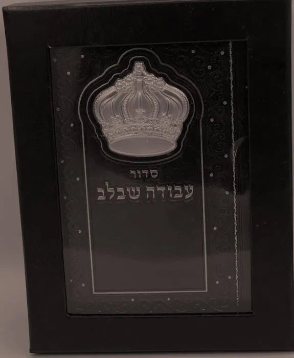 סידור עבודה שבלב נוסח עדות המזרח בכריכה דמוי עור חום עם כתר מוכסף.