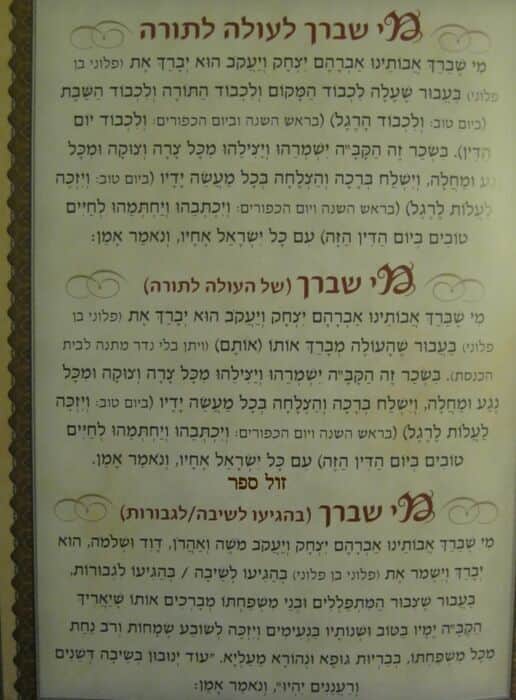 ספר לשימוש הגבאי בבית הכנסת המכיל ברכות 'מי שברך' מוכרות לעולים, לחולים,ליולדת וכדומה יחד עם ברכות ח דשות הנדרשות במעגל החיים כמו: כניסת ילדים לכיתה א', גיוס לצבא, קליטת משפחה בקהילה, ברכה למשפחה שעולה לארץ ועוד.