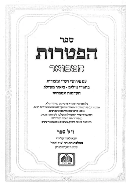 ספר ההפטרות המבואר מאפשר ללומדים את ההפטרה להבין ההפטרה ושייכותה לפרשה.