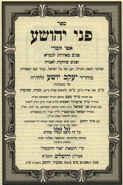 ספר "פני יהושע" מאת רבי יעקב יהושע פאלק זצ"ל , רבה של לבוב ברלין ופרנקפורט – הוא חידושים וביאורים על מסכתות הש"ס.