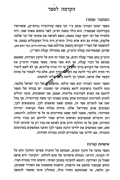 ספר תומר דבורה המבואר לרבי משה קורדובירו / עוז והדר