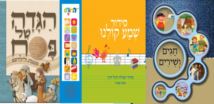 שלושה ספרים מנגנים - סידור שמע קולנו, ספר מנגן חגים ושרים והגדה של פסח מנגנת