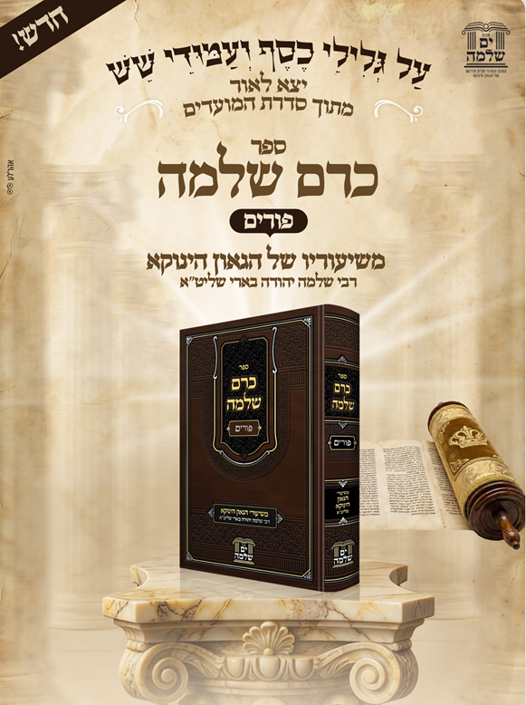 לקראת ימי הפורים הבעל"ט, יוצא לאור בשעה טובה ומוצלחת הספר "כרם שלמה – פורים", הכרך השני בסדרת המועדים של הגאון הרב שלמה יהודה בארי שליט"א.