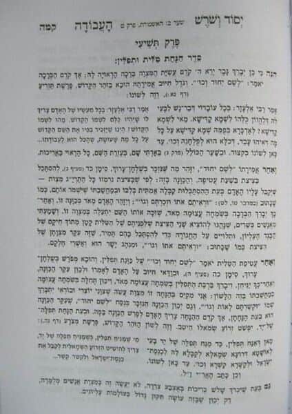 על קדושה וטהרה והענווה, ומרבה לעורר על גודל ההכנה טרם כל מצווה, על ההתלהבות בעת התפילה, וכיצד עליו לחוש שעה שהוא מתפלל. כמו כן מבאר כוונות הפסוקים בכל התפילה ובכוונות שיש לכוון בהן ובהטעמות הנכונות שיש להקפיד עליהן ושלא להבליע את האותיות בתפילה. כך למשל בתפילת העמידה: "השיבנו אבינו – "כשיאמר אבינו יכניס שמחה עצומה בלבו". והחזירנו בתשובה שלימה לפניך – "בתחלה יתפלל במחשבתו בשברון לב מאוד ואחר כך יתפלל תפלה פרטית על עצמו ויתפלל בלב נשבר מאוד שיתן בלבו לחזור מהן ומה טוב כי פלגי מים תרד עיניו".